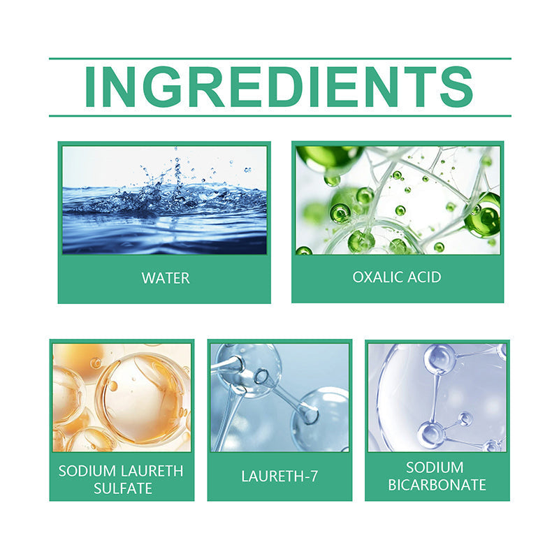 Ingredients: Water, Oxalic Acid, Sodium Bicarbonate, Laureth-7, Sodium Laureth Sulfate