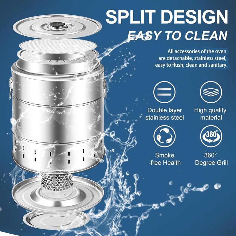 Enjoy outdoor grilling with our Smokeless aerospace grade material Stainless Steel BBQ Bucket. This innovative grill is designed to provide you with the ultimate grilling experience, whether you're in your backyard, indoors, camping, or picnicking at the park. Crafted from high-quality aerospace grade material stainless steel, it offers durability, performance, and a smokeless design that ensures your food is grilled to perfection without the hassle of excessive smoke.