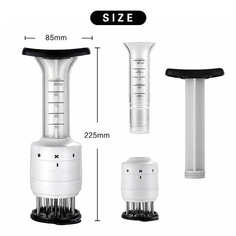 The Meat Tenderizer Marinade Tool ensures that you'll never have to settle for dry or bland food again! With its practical and functional design, this marinade tool penetrates deep into your cut of meat to deliver optimum flavor infusion throughout!